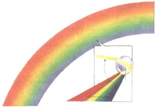 Радуга возникает, когда солнечный свет преломляется крошечными дождевыми каплями. Когда солнечный луч попадает на каплю, она, подобно призме, разделяет белый свет на различные цвета.
