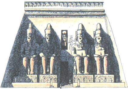 Храм Рамзеса II высечен в высящейся над Нилом скале. Он был перемещен в более высокое место в 1964 г., во время сооружения Асуанской плотины.
