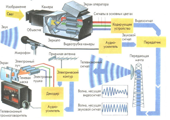 За последние 150 лет в области телекоммуникаций (telecommunications) - дальней связи с помощью телеграфа, телефона, радио, телевидения - произошло множество технологических перемен. Электрический телеграф был изобретен в 1850-х гг.; первый электрический телефон сконструировал Александр Белл в 1876 г. В 1926 г. Джон Лод-жи Бэрд продемонстрировал свой телеприемник. Сегодня в телефонных сетях и кабельном телевидении нередко используются оптические волокна, переносящие сигналы в виде световых лучей, испускаемых лазером.