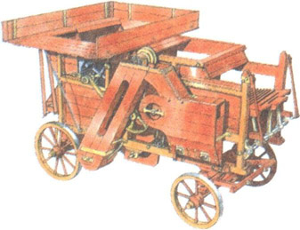 Молотилка 1860-х гг.; ее соединяли с паровой машиной, стоящей за краем поля.
