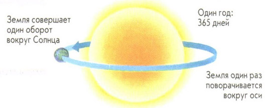 В сущности, мы измеряем время с помощью Солнца или Луны. Солнечные сутки начинаются в полночь, и продолжительность их равна времени, за которое Земля совершает один оборот вокруг своей оси. Время, когда наша сторона Земли обращена к Солнцу, называется днем, а когда она смотрит в противоположную сторону - ночью. Год равен времени, за которое Земля один раз обегает вокруг Солнца - 365 дням 6 часам 41 минуте и 59 секундам.
