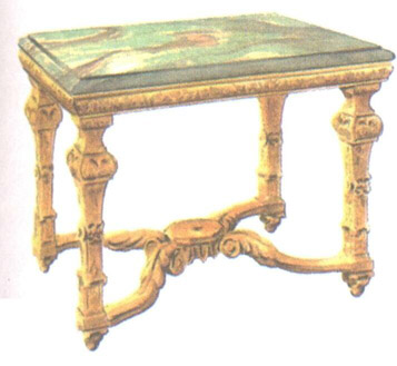 Украшенный причудливой золоченой резьбой французский стол XVI в. с ониксовой столешницей.