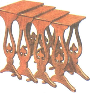 Набор покрытых красным и золотым лаками французских столиков 1860-х гг. Столики разной высоты умещались друг в друге.