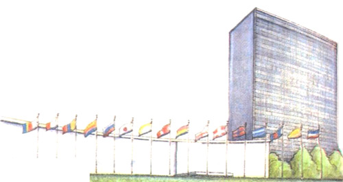 United Nations Организация Объединенных Наций. Создана в 1945 г. для укрепления мира, безопасности и развития сотрудничества между государствами. В нее входят почти все страны мира. Каждая из стран-членов посылает делегатов на регулярные совещания Генеральной Ассамблеи, проводящиеся в Нью-Йорке. Свою деятельность ООН осуществляет с помощью 14 комитетов. Продовольственная и Сельскохозяйственная организации помогают странам производить больше продуктов питания, Всемирная организация здравоохранения борется с заболеваниями. Международный валютный фонд предоставляет странам кредиты.
