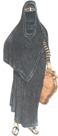 Выходя из дома, мусульманка должна закрываться целиком: от головы до ног. Некоторые из мусульман полагают, что их жены должны закрывать и лицо - чадрой.